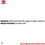 Amulspray infant formula also comes fortified with Vitamins A, C, D, K, B group and a bunch of essential minerals like calcium, magnesium, phosphorus, Iron, copper, Iodine, Manganese and Zinc. Amulspray also meets the guidelines set by the Bureau of Indian Standard specification. So when you buy Amul infant milk food online you can be assured about the goodness of your baby infant formula.