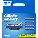 Gillette Mach 3 Turbo 3-Bladed Refill - With Comfort Gel Bar, Advanced Anti-Friction Coating, 4 pcs