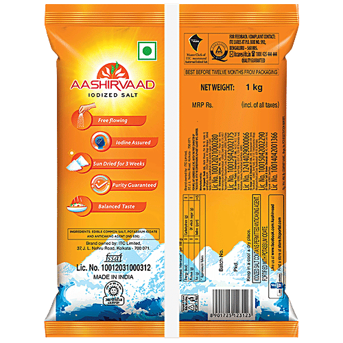 Aashirvaad Salt/Uppu - Iodised, 1 kg Pouch