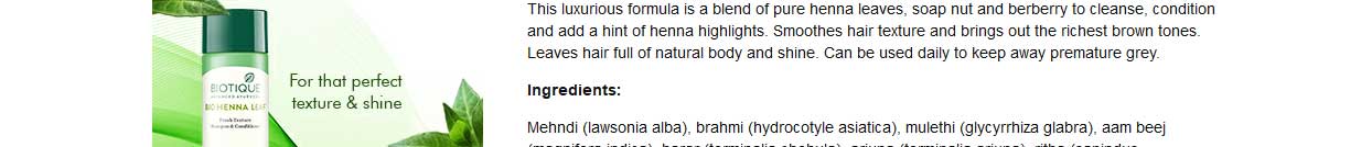 BIOTIQUE Fresh Texture Shampoo & Conditioner - Henna Leaf