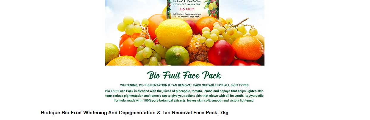 BIOTIQUE Depigmentation & Tan Removal Face Pack - Fruit, Brightening, 75 g