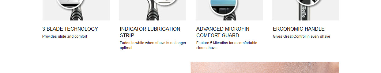 Comfortable Shave - The 3-blade technology and Comfort Guard with 5 Microfins provide a close, comfortable shave Longevity - The exchangeable blades offer longevity to the razor Optimal Shave Indicator - The Indicator Lubrication Strip fades to white to show when the razor blade is no longer providing an optimal shave