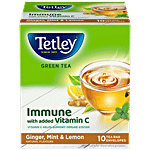 Tetley Green Tea Immune, With Added Vitamin C, Ginger, Mint & Lemon, 14 g (10 Bags x 1.4 g each)