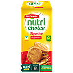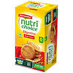 Britannia NutriChoice Digestive Biscuits are fibre-rich biscuits packed with the richness of wheat flour (atta) and bran. With every bite, you experience the coarseness of this fibre-rich biscuit. These Digestive cookies are baked to precision, making them a great snack option. Available in a large pack with 50 g free. Go ahead and make a good choice.