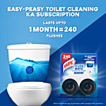 Harpic Flush Matic toilet cistern block is a toilet hygiene product for continuous cleaning without any mess. It is touch-free and hygienic and dissolves completely when finished. A single block lasts up to a month depending upon individual usage. Also, it lets you know when it needs replacing as the colour of the flushed water starts to fade. To keep the freshness going, replace it with a new Flush Matic block as soon as the colour starts to fade. Harpic Flush Matic toilet cleaner is safe to be used with septic tanks and all other toilet cleaners. For regular cleaning, use Harpic liquid. With the new improved formula, now each block lasts up to 240 flushes.