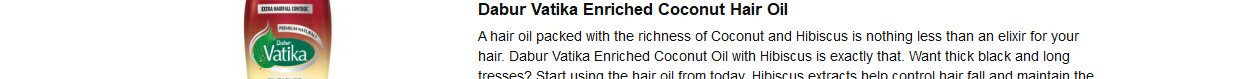 Start using Dabur Vatika Enriched Coconut Oil with a hibiscus hair oil to control hair fall, the all-natural way. Hibiscus extracts promote strong hair to help control hair fall and maintain the natural colour of your hair while coconut deeply nourishes your scalp to encourage healthy hair growth.
