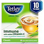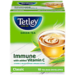 Tetley Green Tea is undoubtedly an excellent source of anti-oxidants. All the goodness now comes with the immunity power of added Vitamin C with the new Tetley Green Tea Immune Range. While anti-oxidants help cleanse your body from within, Vitamin C helps support your body's immune system. This green tea with no calories provides many more benefits like boosting fat metabolism, helping to stay hydrated and helping to feel light and active. Driven by sustainability, these green tea bags are 100% plastic-free and staple-free. The classic green tea contains 100% natural flavours.