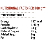 Nutrition per gram/ml: 100g Energy: 137 kcal Protein: 1.45 g Carbohydrate: 33 g Natural Sugars: 26 g Added Sugar: 0 g Fat: 0 g