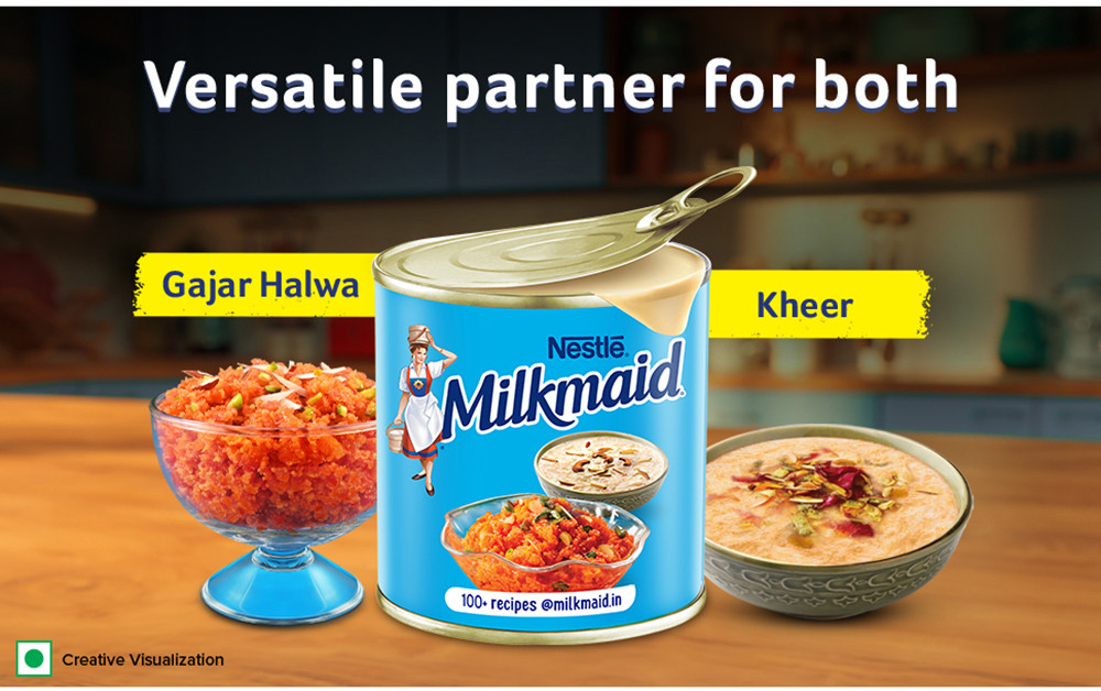 Milkmaid is a rich and creamy sweetened condensed milk that serves as the perfect dessert companion, helping you prepare a wide variety of delicious sweets at home, from payasam and ice creams to cakes and more. Made using high-quality milk, it is a versatile ingredient that blends easily and enhances the taste and consistency of your desserts. Whether you enjoy them after lunch, dinner, or as a snack, Milkmaid makes it easier to create indulgent treats. Compared to regular milk, it offers improved texture and flavour in desserts. It is important to adjust serving sizes appropriately for children of different ages. Each tablespoon of dessert made with Milkmaid contains approximately 45 Kcal.