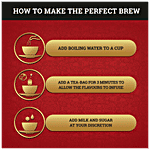 HOW TO MAKE THE PERFECT ENGLISH BREAKFAST TEA: Add a teabag to a cup of boiling water for 3 minutes to allow the flavours to infuse. Add milk and sugar at your discretion.