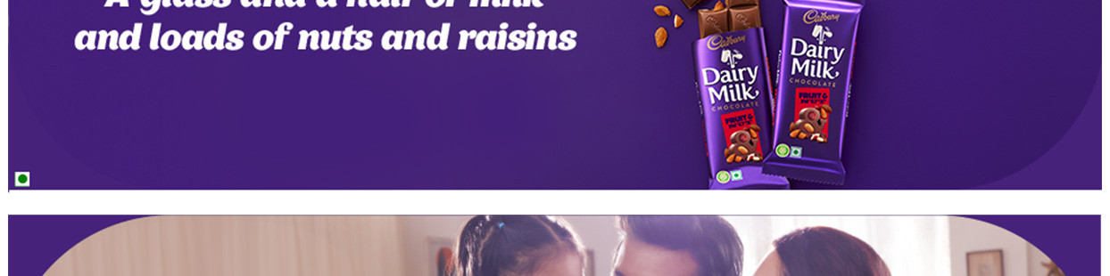 Kuch achha ho jaaye kuch meetha ho jaaye with Cadbury Dairy Milk. Generously made with a glass and a half of milk, this Cadbury chocolate comes with the goodness of crunchy nuts & dried raisins. Cadbury Dairy Milk is the perfect meetha for sharing everyday moments of joy with your loved ones. This milk chocolate bar pack is perfect for snacking & storing in the fridge or as a chocolate gift pack for gifting on special occasions like birthdays and get-togethers. Every chocolate bar of Cadbury Dairy Milk is made from sustainably sourced cocoa. It is suitable for vegetarians.