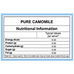 Nutrition per gram: 1g Serving Size: 1 infusion sachet in 100ml of hot distilled water Energy (Kcal): 0.00 Protein (g): 0.00 Carbohydrate (g): 0.00 Sugar (g): 0.00 Fat (g): 0.00