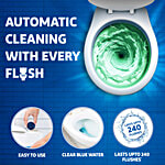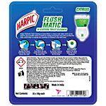 Harpic Flushmatic toilet cleaning cistern block is a drop-in tank tablet which can be used for any accessible cistern. It works by creating strong foam every time you flush the toilet, which helps to maintain cleanliness in the toilet bowl. Harpic Flushmatic toilet cleaner works from inside the cistern to release a dose of powerful detergent with every flush. Distributing the liquid across the bowl, it helps you maintain a hygienic and fresh toilet and prevents the build-up of stains, giving you a continuous clean toilet. You need not remove the pleated cloth wrapper on the block, as this will dissolve in the water until it finishes; just drop the block directly into the cistern. For best results, drop it at the opposite end to the water inlet by the float. Wait for 10 minutes to let the block mix before the first flush. Harpic Flushmatic toilet cistern block is a toilet hygiene product for continuous cleaning without any mess. It is touch-free and hygienic and dissolves completely when finished. A single block lasts up to a month, depending upon individual usage. Also, it lets you know when it needs replacing as the colour of the flushed water starts to fade. To keep the freshness going, replace it with a new Flushmatic block as soon as the colour starts to fade. Harpic Flushmatic toilet cleaner is safe to be used with septic tanks and all other toilet cleaners. For regular cleaning, use Harpic liquid. With the new improved formula, now each block lasts up to 240 flushes.