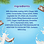 Milk Chocolate Coating (Sugar, Milk Solids, (Skimmed Milk Powder, Lactose, Milk Fat, Whey Powder), Cocoa Butter, Cocoa Mass, Centre Filling (Desiccated Coconut (21%), Emulsifier (Soya Lecithin (E322)), Natural Vanilla Extract), Sugar, Glucose Syrup, Emulsifiers (Mono-an Diglycerides Of Fatty Acids (E471), Glycerol (E422)), Salt, Natural Vanilla Extract). Milk Chocolate: Cocoa Solids 25% Min.