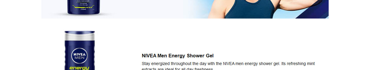 Nivea Men Energy Shower Gel is an extra-strong, foamy gel formula made specially for men who want long-lasting freshness every day. Formulated with mint extracts and infused with a masculine fragrance, Nivea Men Energy Shower Gel provides your skin and with a 24hour refreshing feeling, leaving it revitalised and cared for. Nivea Men Energy Shower Gel is pH skin balanced, dermatologically approved and suitable for use on the face, body and hair.