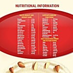 Milk solids, Sugar, Peanut oil, Maltodextrin, Fructo oligosaccharide, Flavours (Natural, Nature-identical and artificial flavouring substances), Mineral mix (Potassium dihydrogen phoshate, Calcium phosphate, Lipofer, Ferrous sulphate, Zinc sulphate, Manganese sulphate, Copper sulphate, Potassium 10 date, Sodium selemite, Sodium chromate, Sodium moly10 date), Annatto (E160b), Cardamom powder, DHA, Vitamin mix (VitaminC,E,A,B1,B6,B2,B12,B10, Niacinamide, Calcium pantothenate, Folic acid).