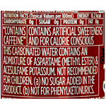 Carbonated Purified Water, Flavour, Colour (Caramel 150d), Food Acids (338, 330), Sweeteners (951, 950), Preservative (211).