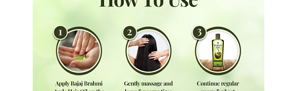 Take the necessary amount of Bajaj Brahmi Amla hair oil on your palm.