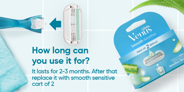 Designed as a razor for women, Gillette Venus glides smoothly along your curves and leaves with your smooth Venus skin. Simply apply water and soap, glide Venus against the direction of hair growth and then wash and apply your favourite moisturizer! Each refill lasts approx. 3 months (depending on usage - basis full body hair removal once a week), post which you can purchase the refills pack. This hair remover can be used by any woman/girl on the face, arms, underarms, legs and full body including the sensitive bikini area.