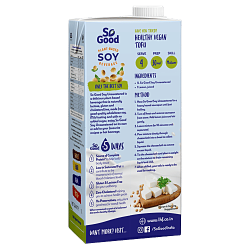 So Good Plant-Based Soy Beverage - Unsweetened, No Added Sugar, 1 L