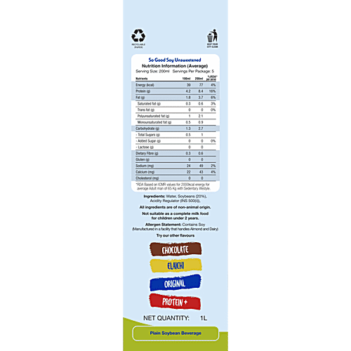 No Question askedSo Good Plant-Based Soy Beverage - Unsweetened, No Added Sugar