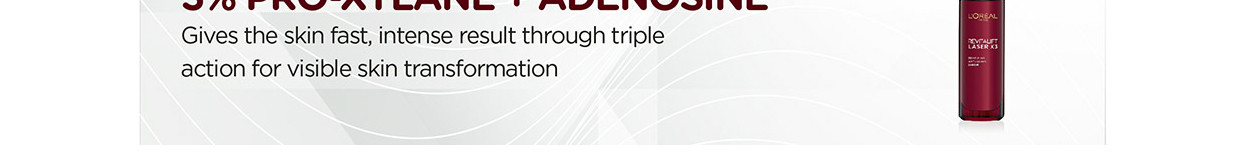1st renewing anti-ageing serum created by L'Oreal Skincare Laboratories to dramatically reduce wrinkles, fine lines & ageing. Instantly refines skin texture to reduce wrinkles, boost elasticity and hydration for a smoother and radiant look. 3 % Pro-Xylane + Adenosine give the skin fast, intense result through triple action for visible skin transformation.