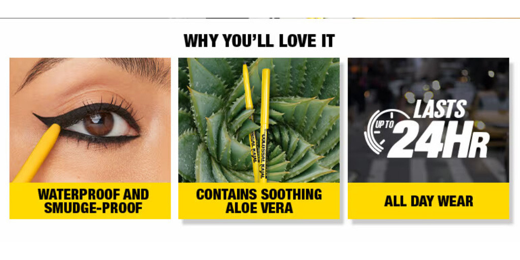 Maybelline New York’s Colossal Kajal has a waterproof formula infused with the goodness of Aloe Vera. This kajal lasts for up to 24 hours without smudging, giving you the perfect eye look. To get the best out of your Colossal Kajal, twist up only as much as required for the application. Snap the airtight cap shut after every use.