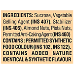 Sucrose, Vegetable Gelling Agent (INS 407), Stabilizer (INS 406), Almond Nuts, Pista Nuts, Permitted Anti-Caking Agent (INS 460), Contains: Permitted Synthetic Food Colour (Ins 102, Ins 122). Contains Added Nature Identical & Synthetic Flavour