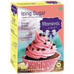 Moments Icing Sugar is used for frosting, glazing, filling, thickening, and decorating over the cake, cookies, chocolate, doughnuts and pastries. A must-have kitchen cooking ingredient for baking. Icing sugar is also known as powder sugar which is made by finely grinding granulated sugar. It has a fine texture which makes it easy to dust it over a cake or pie. It is great to use as a decoration. It is a very handy ingredient used while making cakes and bakery products.