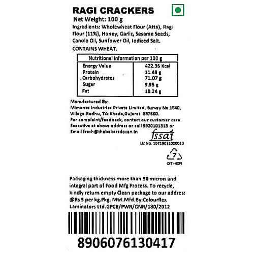 The Baker's Dozen Ragi Crackers, 230 g