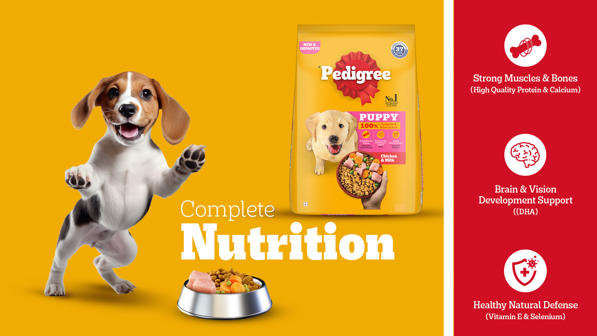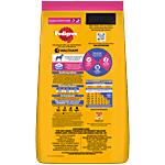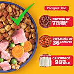 Pedigree Puppy Dry Dog Food is a delightful and nutritious meal that has been specially formulated to support the well-being of your furry companion. Developed by experts using high-quality ingredients, including succulent chicken and creamy milk, this dry dog food provides a tasty and wholesome diet for your growing puppy. Packed with 37 essential nutrients, it helps to build strong muscles and bones, promote brain and vision development, and bolster your puppy's natural defences. The blend of protein, calcium, DHA, vitamin E, and selenium ensures your little one receives all the nourishment they need to thrive. Pedigree's recipes are based on research from the renowned Waltham Centre for Pet Nutrition, and every product meets the stringent requirements set by the U.S. National Academy of Science. Treat your puppy to a delightful and nutritious mealtime with Pedigree Puppy Dry Dog Food, a delicious and healthy choice for your furry friend.