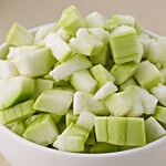 Considered as one of the healthiest vegetables around, the flesh of bottle gourds is full of water and tastes slightly bitter. We deliver them freshly and diced, making your preparations less messy and much easy.