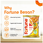 Fortune Besan is hygienically made from 100% chana dal and passes through more than 25 quality checks and is processed with advanced grinding technology which retains the flavours and aroma of natural chana dal. The highest grade of chana dal and only standardized coloured chana dal passes through our advanced colour sortex machine for grinding to give consistency in Fortune Besan leading to the finest taste of any recipe.