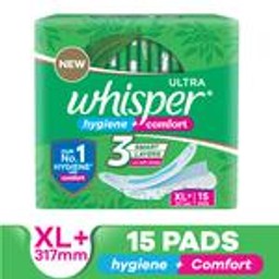 Whisper Ultra Up To No Gap No Leaks Sanitary Pads, XL+, 15 pcs