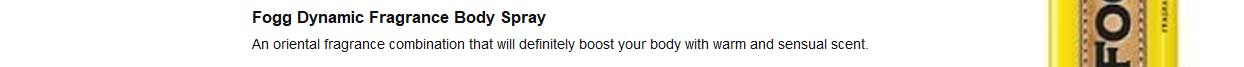 There are a handful of men who are born versatile. People fall short of describing their personalities. Confident and dynamic, these men deserve a fragrance that's just as multi-sensorial as them. Introducing Fogg Dynamic, a tantalising perfume body spray that's made for today's edgy and versatile men. It has not one but many amazing qualities about it. Its no gas formula means that each can of Fogg Dynamic contains 0% gas and perfume liquid. Since it doesn't have gas, you get more sprays compared to those age-old regular gas deodorants. Not just that, each spray of Fogg Dynamic is strong and lasts on you for a long time due to its higher concentration of perfume oil. Spray it on you in the morning and forget about body odour throughout the day. This perfume body spray smells so amazing that everyone that crosses you is bound to take notice. Fogg is India's No.1 perfume body spray brand and this dynamic perfume body spray is a must-have.