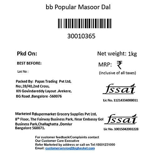 No Question askedbb Popular Masoor Dal/Mysore Bele