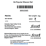 bb Popular Masoor Dal/Mysore Bele, 1 kg Pouch