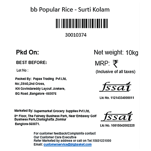 bb Popular Surti Kolam - Rice (6 + Months  Old), 10 kg Bag