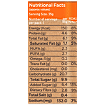 Nutrition per gram/ml: 100g Serving Size: 38g Energy: 172 Kcal Protein: 5.1 g Fat: 7.1 g Saturated Fat: 1.2 g MUFA + PUFA: 6.0 g Omega-3: 0.06 g Trans Fat: 0 g Cholesterol: 0 mg Total Carbs: 22.0 g Dietary Fibre: 3.2 g Natural Sugars: 11.2 g Added Sugar: 2.3 g Sodium: 8.3 mg