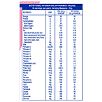 Serving Size: 25 g Energy: 90 kcal Protein: 8 g Carbohydrates: 14.3 g Total Sugars: 9.5 g Added Sugars: 7.4 g Dietary Fibre: 0.6 g Fat: 0.38 g Saturated Fatty Acids: 0.19 g Mono-unsaturated Fatty Acids: 0.06 g Poly-unsaturated Fatty Acids: 0.14 g Trans fatty acids: 0.03 g Cholesterol: 0.1 g DHA: 20 mg Vitamin A: 150 mcg RE Vitamin D: 1.3 mcg Vitamin E: 5.5 mg Vitamin C: 20 mg Vitamin B1: 0.3 mg Vitamin B2: 0.7 mg Niacin: 3.5 mg Pantothenic acid: 1.5 mg Vitamin B6: 1.3 mg Folic Acid: 125 mcg Vitamin B12: 0.1 mcg Biotin: 7.5 mcg Iron: 6.8 mg Calcium: 325 mg Phosphorus: 225 mg Magnesium: 88 mg Zinc: 1.1 mg Iodine: 22 mcg Selenium: 6 mcg Copper: 120 mcg Sodium: 75 mg Potassium: 175 mg Chloride: 60 mg