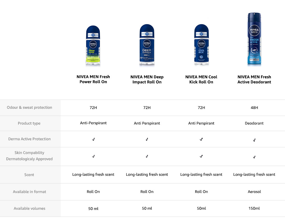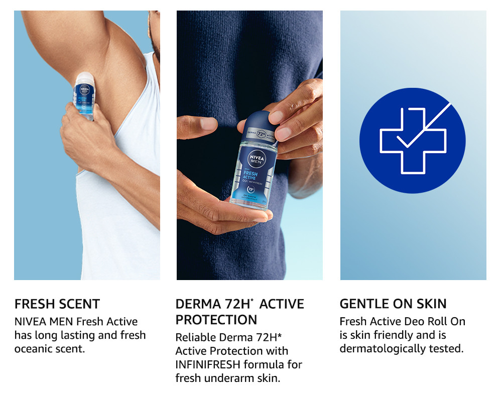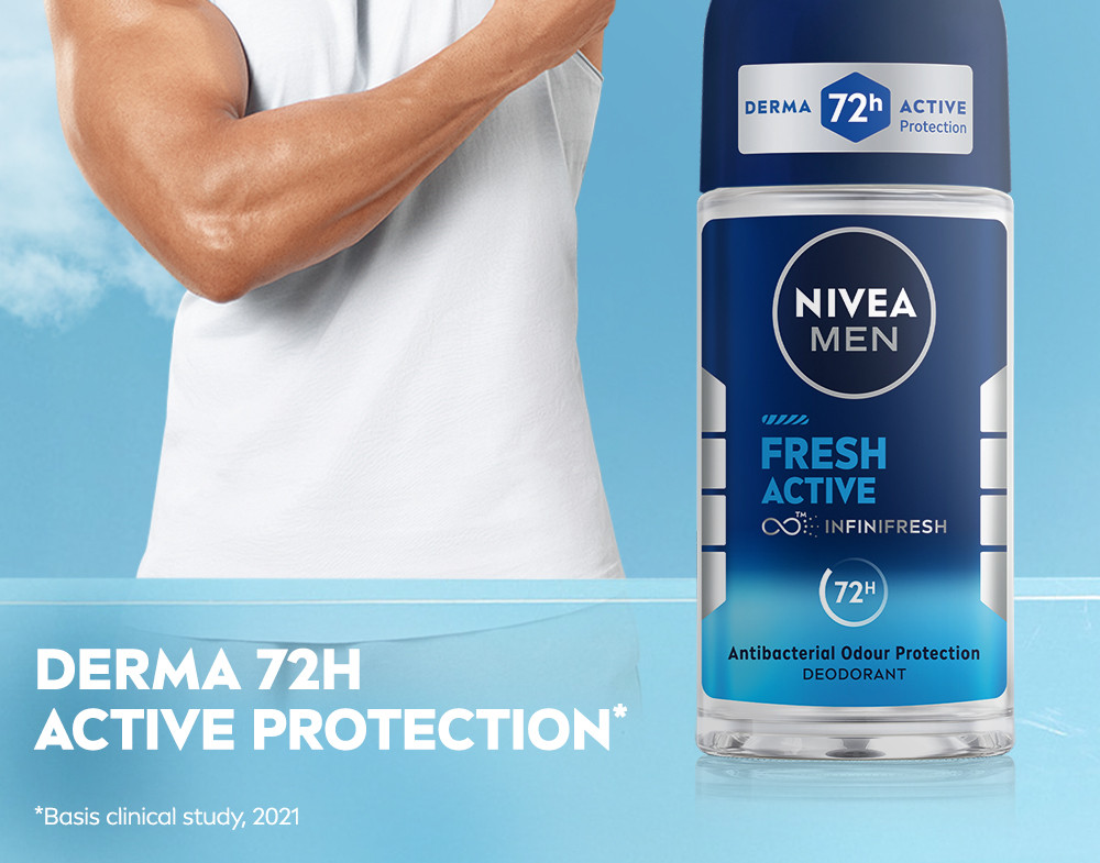 NIVEA MEN Fresh Active Antiperspirant Deodorant is a unique formula that provides all-day natural freshness and long-lasting protection. Gentle formula with reliable antiperspirant protection and infused with ocean extracts, NIVEA MEN Fresh Active Antiperspirant Deodorant gives your skin an instant feeling of freshness while protecting you from sweat and body odour for 48 hours.