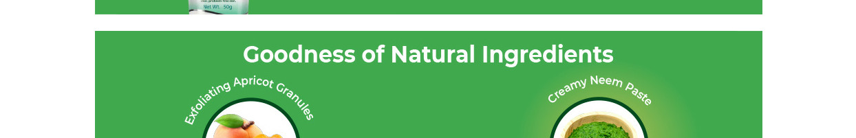 Neem is an excellent skincare ingredient known for its antibacterial properties. It improves general skin health and immunity, combating bacterial infections such as acne, boils, and ulcers. Neem tackles bacteria from the root and prevents the recurrence of pimples and blemishes. Apricot granules gently exfoliate dead skin cells, to bring out your skin's natural glow.