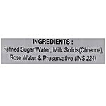 Sugar, Water, Milk Solids (Chhanna), Rose Water & Preservative (E 224), Contains Milk & Sulphite, May Contain Gluten.