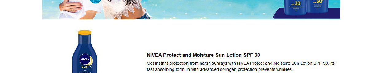 Enjoy immediate protection combined with moisturising care with the sunscreen Lotion from NIVEA.