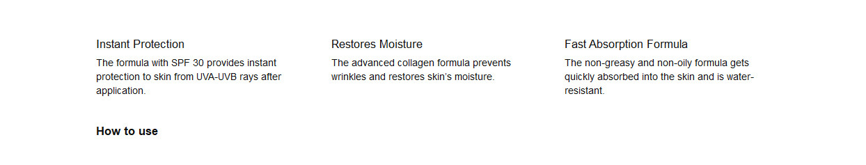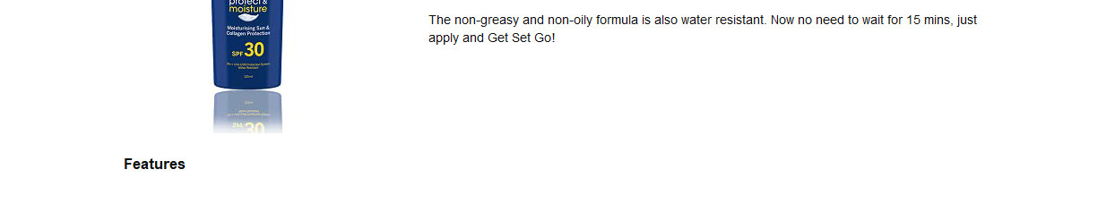 The water resistant formula prevents damaging effects of UV rays on the skin including sunburn and premature skin aging whilst also reducing the risk of sun allergies. The new formula with Clothing Protection helps UV filter induced stains to wash out more easily - compared to previous formulas.