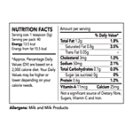 Nutrition per gram/ml: 100g Total Fat: 23.0g Saturated Fat: 14.7g Cholesterol: 0.9g Sodium: 60.0mg Total Carbohydrates: 2.0g Sugars: 0g Protein: 0.6g Vitamin-A: 200mcg Calcium: 200mg