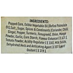 Popped Corn, Edible Vegetable Oil, Refined Palmolein Oil, Salt, Spices & Condiments (Coriander, Chilli, Ginger, Pepper, Turmeric, Fenugreek), Onion, Mango Powder, Garlic, Corn Starch, Flavour Enhancer (E 621), Tomato Powder, Acidity Regulator (E 330), Mailk Solids, Dehydrated Herb And Anticaking Agent (E 551), Anti Oxidant (E 319).