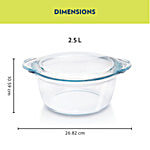 Borosil Casserole/Serving Bowl With Lid - Glass, Deep Round, IH22CA14225, 2.5 L, 1 pc