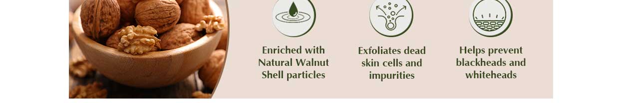 Everyuth Naturals Exfoliating Walnut Scrub has natural Walnut Shell Particles and Nano Multi-Vita. Natural Walnut Shell Particles exfoliate dead skin cells and skin impurities, which may block pores and may cause blackheads & whiteheads. Nano Multi-Vita helps in nourishing and revitalising the skin, leaving your skin clean, clear and beautiful.