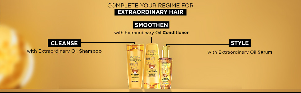 L'Oréal Paris Extraordinary Oil conditioner is enriched with an optimised combination of oils - Argan, Almond, Jojoba, Olive, Camelina, and Coconut - to transform dry,dull & lifeless hair into strong, thick, and soft hair; whilst leaving it smooth, shiny, and manageable.